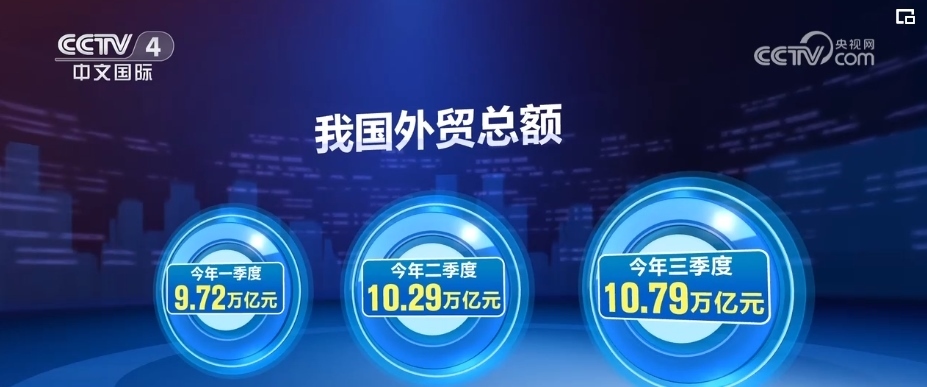 2023年一、二、三季度,我國外貿(mào)總額分別為9.72萬億元、10.29萬億元和10.79萬億元,外貿(mào)規(guī)模逐季抬升。