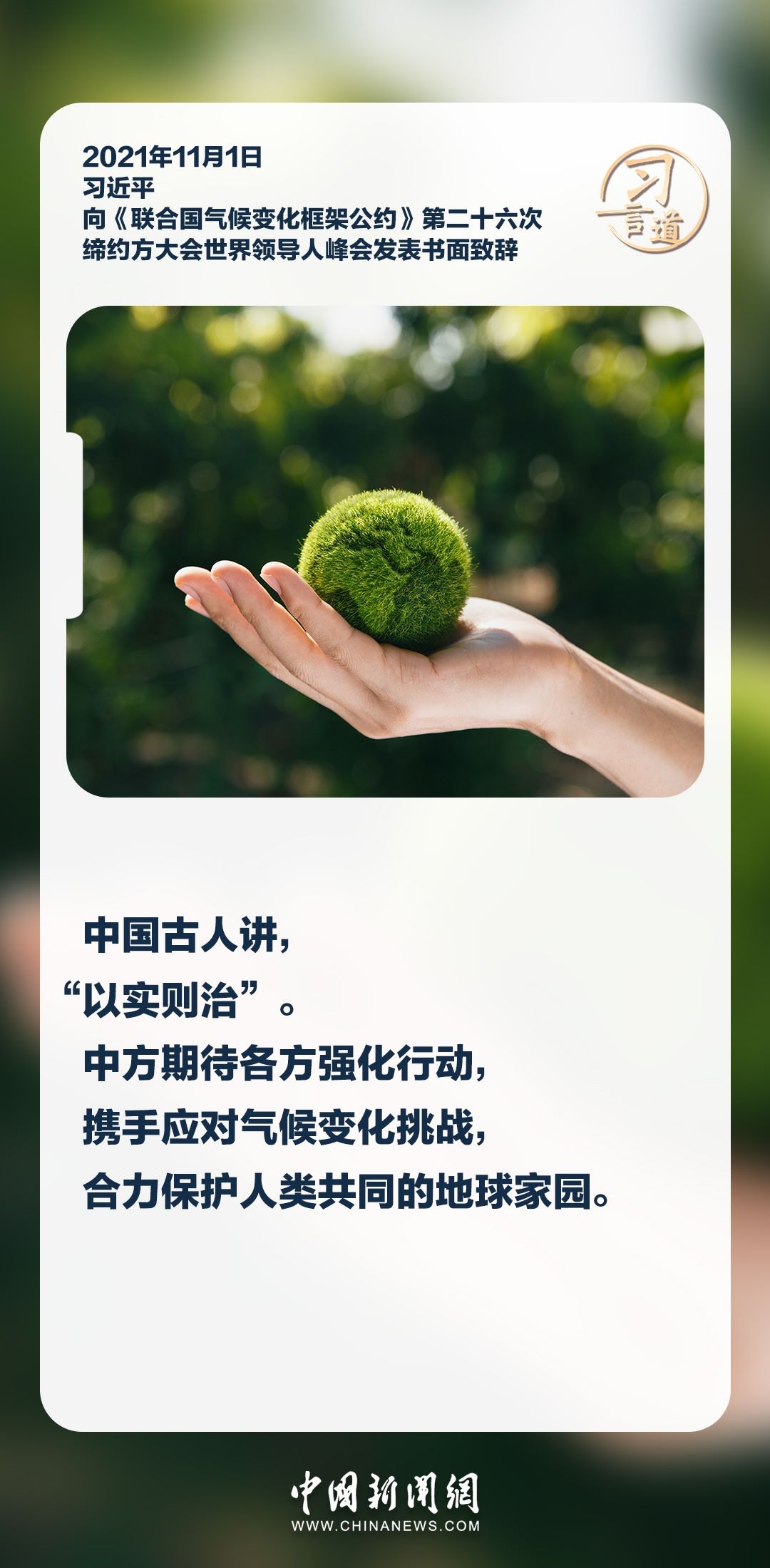 保護(hù)生態(tài)環(huán)境、應(yīng)對(duì)氣候變化是全人類面臨的共同挑戰(zhàn)。習(xí)近平主席高度重視應(yīng)對(duì)氣候變化國(guó)際合作,提出一系列重要倡議和主張,強(qiáng)調(diào)攜手應(yīng)對(duì)氣候變化挑戰(zhàn),合力保護(hù)人類共同的地球家園。