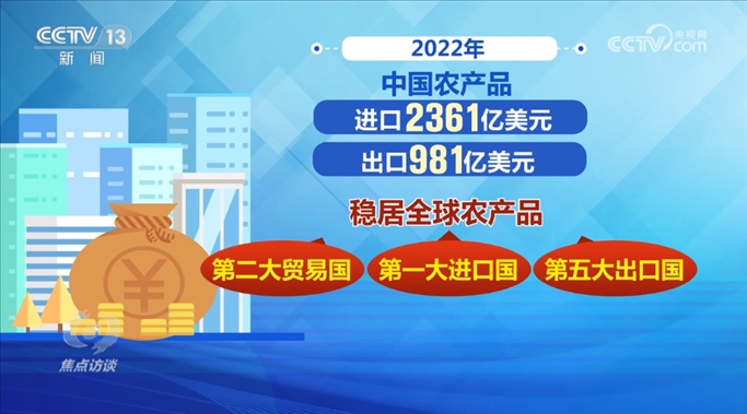 數(shù)據(jù)顯示,2001年至2022年,中國(guó)農(nóng)產(chǎn)品貿(mào)易額年均增長(zhǎng)12.6%,農(nóng)產(chǎn)品出口額年均增長(zhǎng)9.1%,進(jìn)口額年均增長(zhǎng)15.4%。2022年,中國(guó)農(nóng)產(chǎn)品進(jìn)口2361億美元,出口981億美元,穩(wěn)居全球農(nóng)產(chǎn)品第二大貿(mào)易國(guó)、第一大進(jìn)口國(guó)、第五大出口國(guó)。糧食安全的穩(wěn)定性,離不開農(nóng)業(yè)供應(yīng)鏈的安全可控。