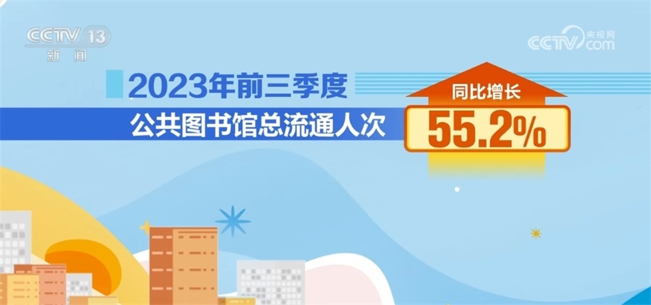 據(jù)統(tǒng)計(jì),2023年前三季度公共圖書館總流通人次同比增長55.2%;2023年前三季度,全國文化館培訓(xùn)班次近38萬個(gè),同比增長50%;文化館(群藝館)服務(wù)人次同比增長142.7%。