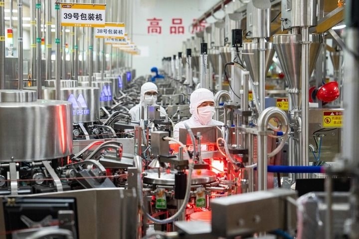 2023年11月23日,在鹽津鋪?zhàn)訛g陽生產(chǎn)基地,工人在進(jìn)行產(chǎn)品包裝。新華社記者 陳思汗 攝