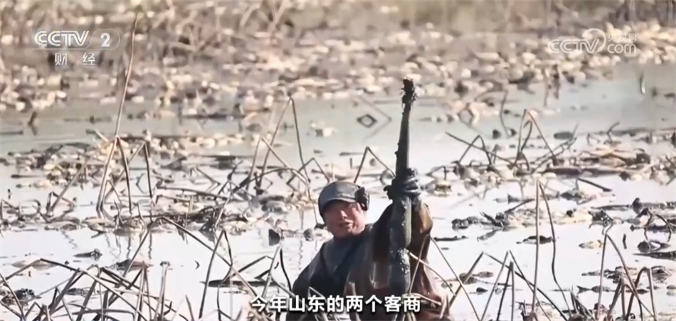 江蘇省淮安市洪澤區(qū)岔河鎮(zhèn)蓮藕種植戶 王金:我今年長了100畝河藕,今年這個(gè)春節(jié)前市場需求量很大,山東的兩個(gè)客商跟我訂了20萬斤藕。