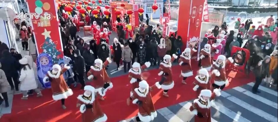在黑龍江同江市的中俄年貨大集上,不僅有當(dāng)?shù)靥厣膬鲷~、凍梨、凍柿子,還有俄羅斯的大列巴、巧克力等美食。逛吃的同時,現(xiàn)場還能欣賞各具特色的中俄文藝表演,讓趕集的人一飽眼福。