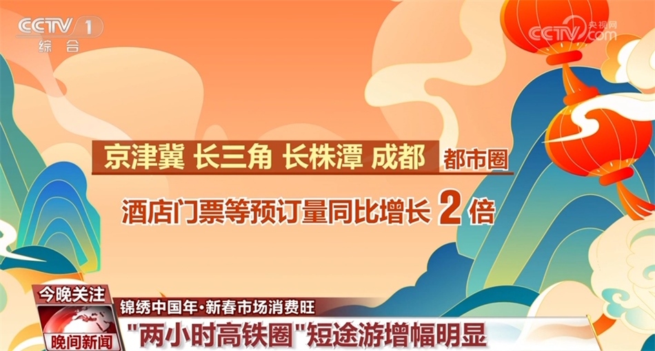 而在說(shuō)走就走的短途游中,“兩小時(shí)高鐵圈”受到青睞。截至大年初一,春節(jié)假期“兩小時(shí)高鐵圈”短途游的搜索量同比增長(zhǎng)7倍。從實(shí)際預(yù)訂情況看,京津冀、長(zhǎng)三角、長(zhǎng)株潭、成都都市圈等區(qū)域的酒店、門票等相關(guān)旅游產(chǎn)品預(yù)訂量同比增長(zhǎng)2倍。