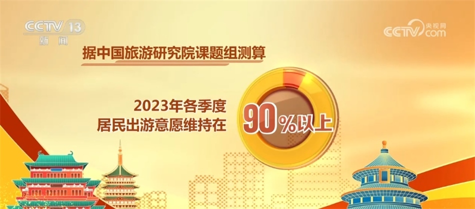 據中國旅游研究院課題組測算,2023年各季度居民出游意愿維持在90%以上。2023年全國游客滿意度綜合指數80.04,處于滿意水平,與2019年滿意度水平基本持平。