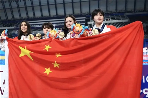 北京時(shí)間2月16日凌晨,在2024世界游泳錦標(biāo)賽女子4×200米自由泳接力決賽中,由艾衍含、龔真琦、李冰潔和楊佩琪組成的中國(guó)隊(duì)以7分47秒26的成績(jī)奪冠。