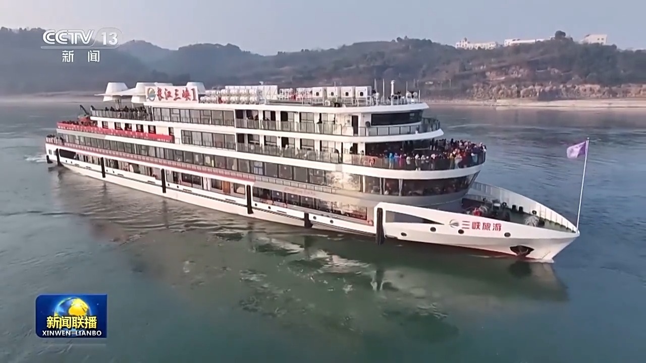 在長江上,全球載電量最大的純電動(dòng)游輪“長江三峽1”號,大年初二滿載1300名游客開啟龍年首航?!傲阄廴尽⒘闩欧拧庇伍L江,成為新年新時(shí)尚。
