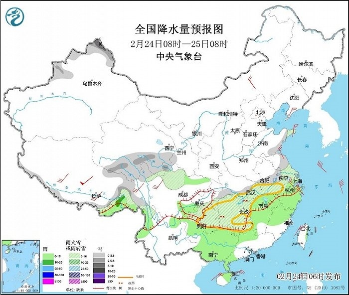 央視網(wǎng)消息:中央氣象臺(tái)網(wǎng)站2月24日消息,昨日,河南、安徽、四川等地部分地區(qū)出現(xiàn)了明顯的雨雪天氣,湖北、湖南及貴州部分地區(qū)出現(xiàn)凍雨。近期我國大部地區(qū)氣溫偏低,南方部分地區(qū)有雨雪冰凍天氣,公眾需持續(xù)做好防寒保暖,外出警惕雨雪冰凍天氣造成的路面濕滑,注意交通安全。