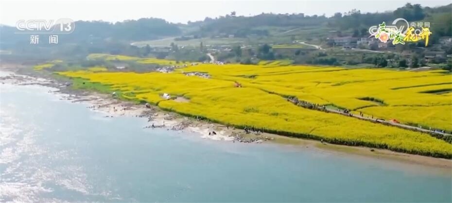 這里是長江入渝后的第一個(gè)成片油菜花海。由于河床泥沙適宜油菜生長,當(dāng)?shù)剞r(nóng)民也有了種植油菜的傳統(tǒng)。每年三月,大地就像鋪上了一層金燦燦的地毯,成為游客親近自然、休閑游玩、共享生態(tài)福利的好去處。
