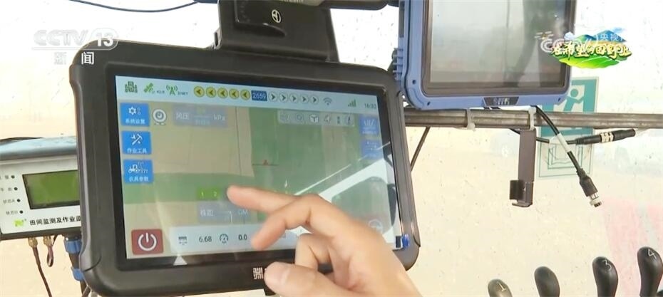 記者看到,播種機上有幾塊顯示屏,其中一塊顯示屏可以通過北斗導航對整個農(nóng)機的駕駛速度進行有效控制,能夠保證播下去的種子株間距更加均勻,而且還能夠準確、不漏種。