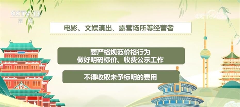 電影、文娛演出、露營場所等經(jīng)營者要嚴(yán)格規(guī)范價格行為,做好明碼標(biāo)價、收費(fèi)公示工作,不得收取未予標(biāo)明的費(fèi)用。