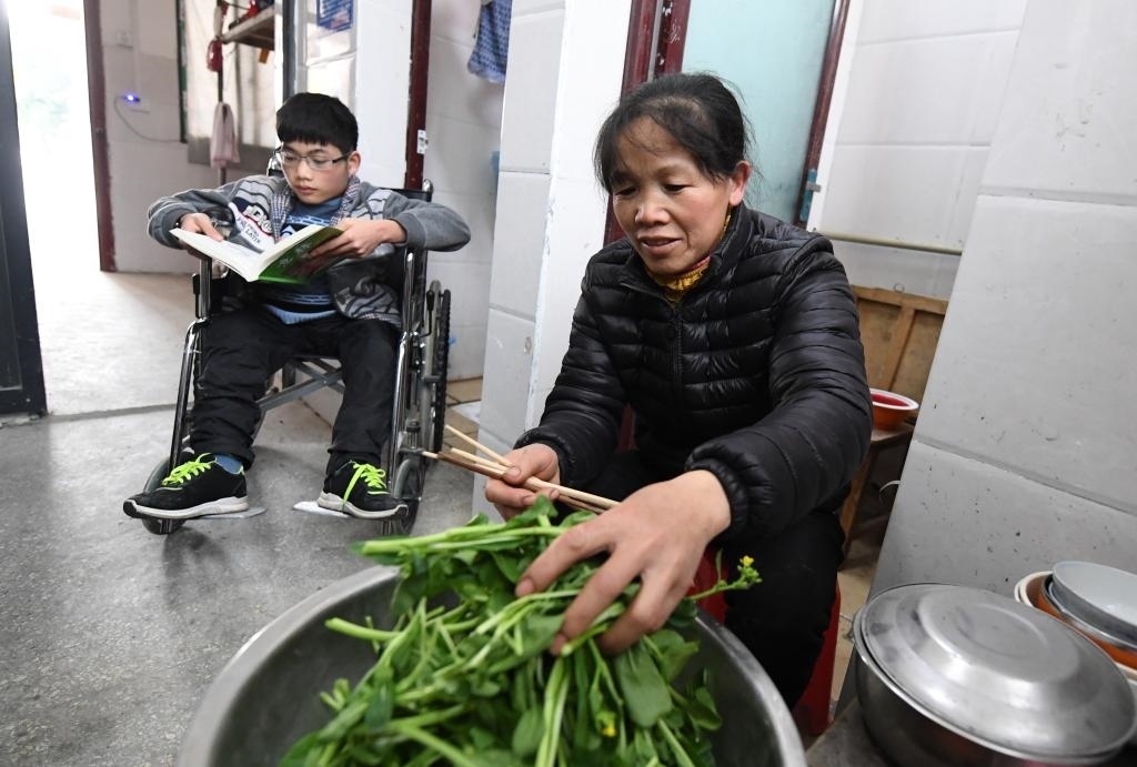 母子倆日常生活開支幾乎都?jí)涸邳S乜鮮一個(gè)人身上。她家里種有三畝田,只有節(jié)假日才能回去打理。平時(shí),她在照顧兒子之余,在學(xué)校撿拾廢舊物品賣錢補(bǔ)貼生活費(fèi)。“再苦再累也要咬牙堅(jiān)持下去?!秉S乜鮮說(shuō)。