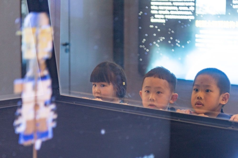 2024年4月24日,小朋友在哈爾濱工業(yè)大學(xué)航天館內(nèi)參觀。航天館是哈爾濱工業(yè)大學(xué)重要的教學(xué)基地,也是向社會(huì)公眾開展航天國防教育、弘揚(yáng)航天精神的重要場所,被授予首批全國科普教育基地、首批國家航天局航天科普教育基地、全國中小學(xué)生研學(xué)實(shí)踐教育基地等。