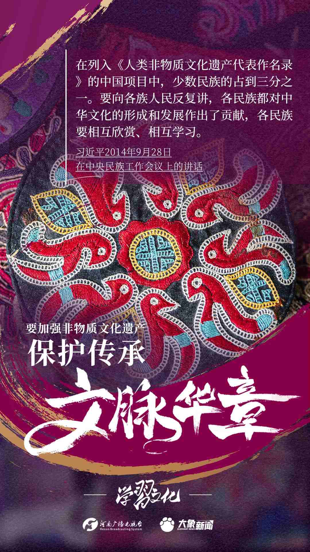 非物質(zhì)文化遺產(chǎn)是中華優(yōu)秀傳統(tǒng)文化的重要組成部分,是中華文明綿延傳承的生動見證,是我國各族人民寶貴的精神財富。習(xí)近平總書記十分關(guān)心非物質(zhì)文化遺產(chǎn)的保護傳承,多次強調(diào)“要扎實做好非物質(zhì)文化遺產(chǎn)的系統(tǒng)性保護”“培養(yǎng)好傳承人”等。大象新聞為您梳理,邀您一起學(xué)習(xí)、領(lǐng)悟、踐行。