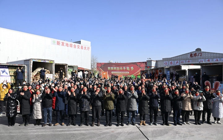 2023年1月18日,北京新發(fā)地農(nóng)產(chǎn)品批發(fā)市場(chǎng)留守的商戶和采購年貨的群眾同習(xí)近平總書記視頻連線。