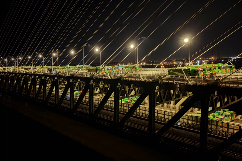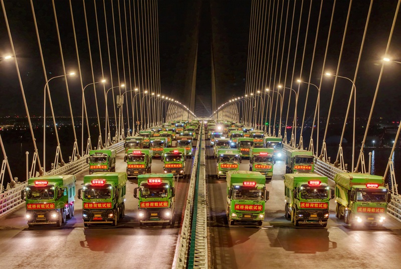 6月20日晚,常泰長江大橋主航道橋進(jìn)行4400噸荷載試驗(yàn),110輛重型卡車駛上主航道橋面,啟動靜態(tài)荷載試驗(yàn)。自6月16日起,常泰長江大橋開啟為期一周的荷載試驗(yàn),對大橋承載力和安全性進(jìn)行全面評估。