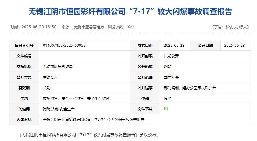調(diào)查認(rèn)定,無(wú)錫江陰市恒園彩纖有限公司“7·17”較大閃爆事故是一起因崗位員工盲目操作,生產(chǎn)單元安全設(shè)施缺失,現(xiàn)場(chǎng)應(yīng)急處置不當(dāng),地方黨委、政府及其有關(guān)部門(mén)履職不到位而導(dǎo)致的較大生產(chǎn)安全責(zé)任事故。