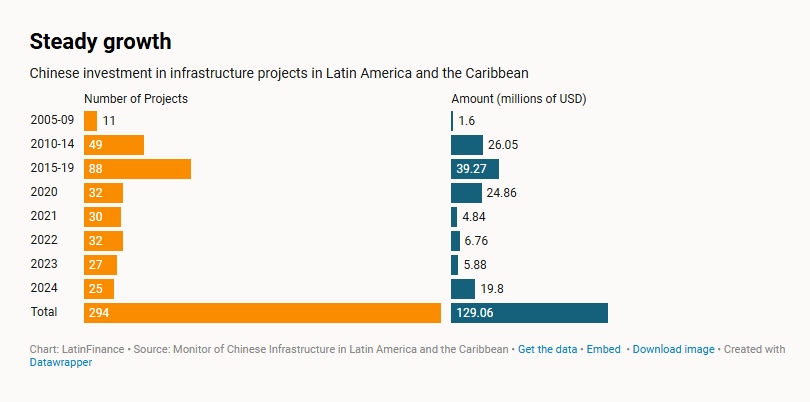 中國在拉丁美洲和加勒比地區(qū)投資基礎設施項目(來源:《拉美金融》)