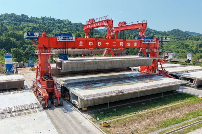 當(dāng)日,由中鐵十二局集團(tuán)承建的渝萬高鐵江林村特大橋進(jìn)入架梁施工作業(yè)階段。渝萬高鐵是我國“八縱八橫”高鐵網(wǎng)包(銀)海、京昆通道的組成部分,正線全長(zhǎng)251公里,設(shè)計(jì)時(shí)速350公里。