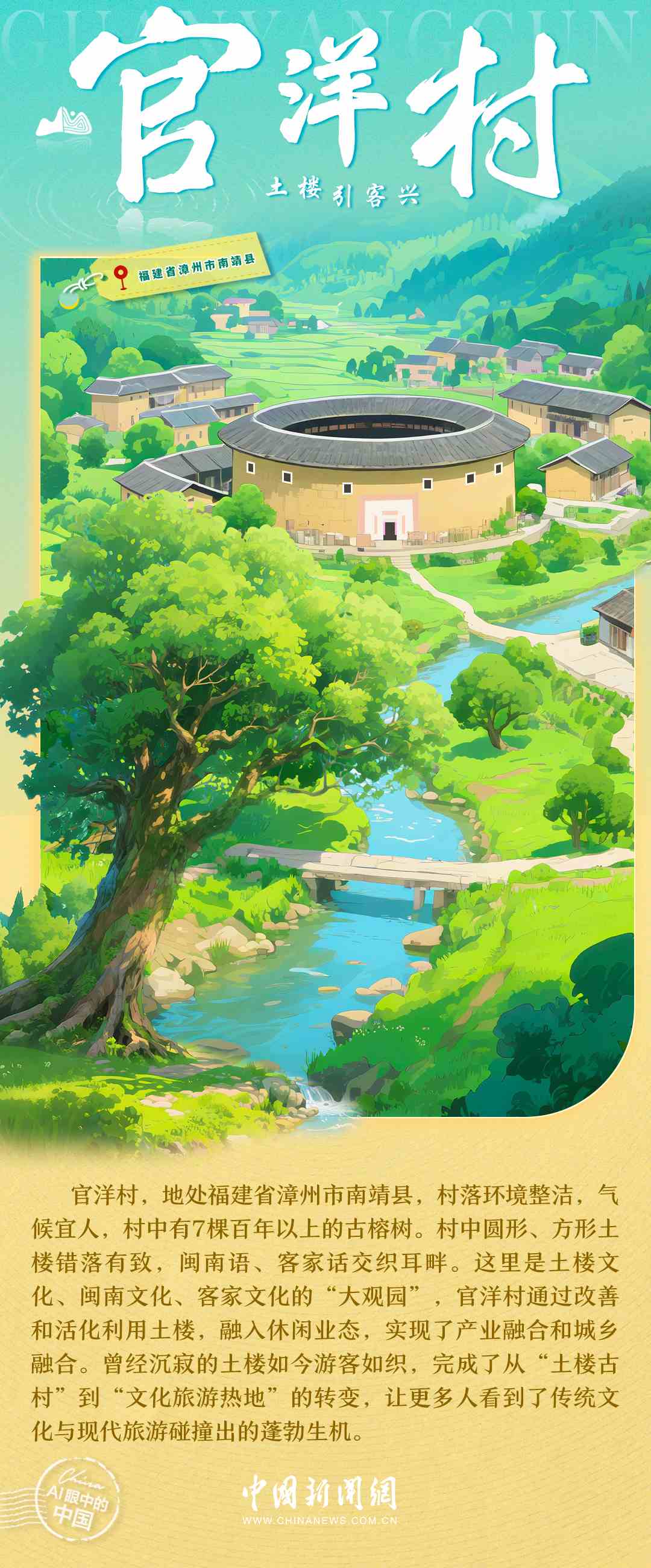梯田的清晨,竹海的風,土樓的煙火,古寨的傍晚……中國鄉(xiāng)村正描繪出一幅產(chǎn)業(yè)興旺、生態(tài)宜居、鄉(xiāng)風文明的時代畫卷。每一處風景,都是中國鄉(xiāng)村全面振興的生動注腳,每一段故事,都是探索全球鄉(xiāng)村發(fā)展路徑的中國實踐。7月6日,世界農(nóng)村發(fā)展日,讓我們一起走進AI視野中的鄉(xiāng)村,去看看美麗中國的勃勃生機→
