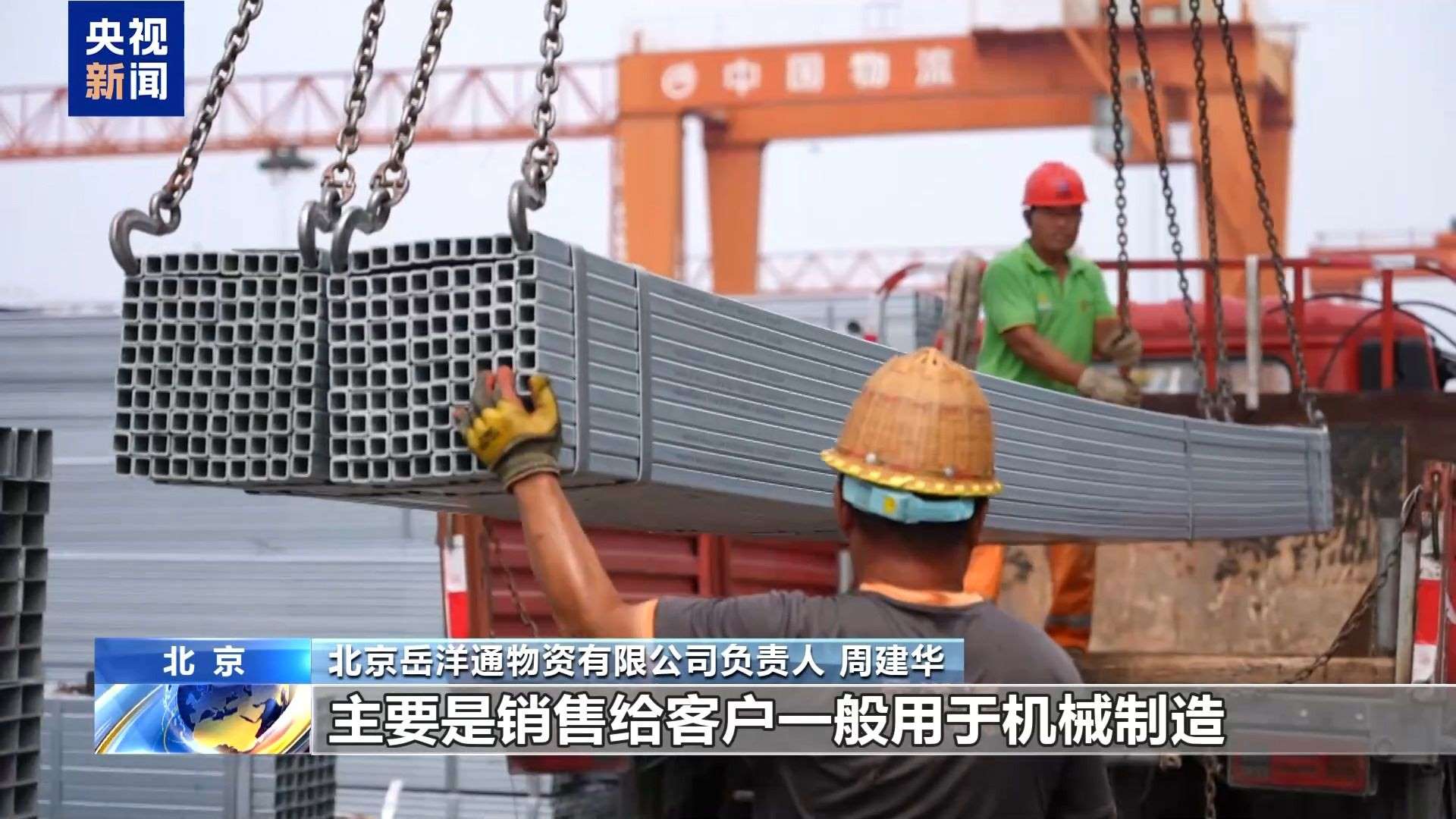 在北京的這家鋼貿(mào)企業(yè),記者看到前來提貨的卡車排成了隊(duì)。負(fù)責(zé)人告訴記者,眼前這些正在裝車的長方形的鋼管就是常見的工業(yè)用鋼材。