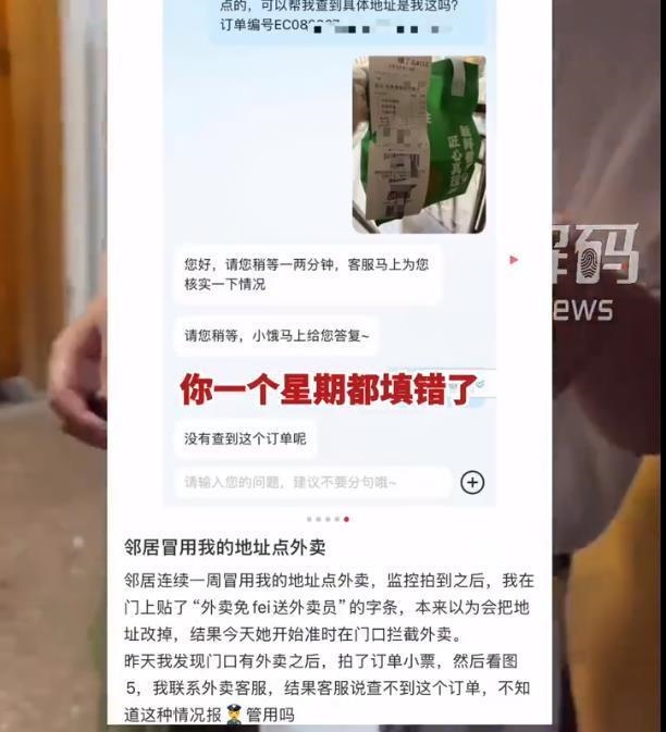女鄰居冒用他人地址點(diǎn)外賣(mài)的行為