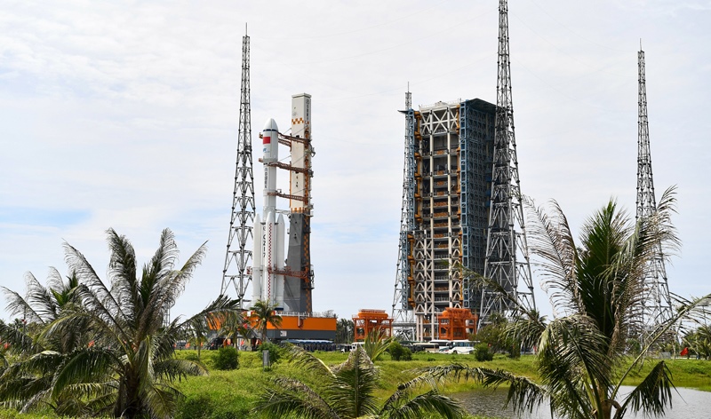 7月12日,天舟九號(hào)貨運(yùn)飛船與長(zhǎng)征七號(hào)遙十運(yùn)載火箭組合體垂直轉(zhuǎn)運(yùn)至發(fā)射區(qū)。