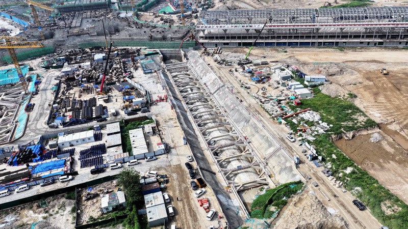 7月30日拍攝的濟(jì)濱高鐵機(jī)場(chǎng)隧道施工現(xiàn)場(chǎng)。