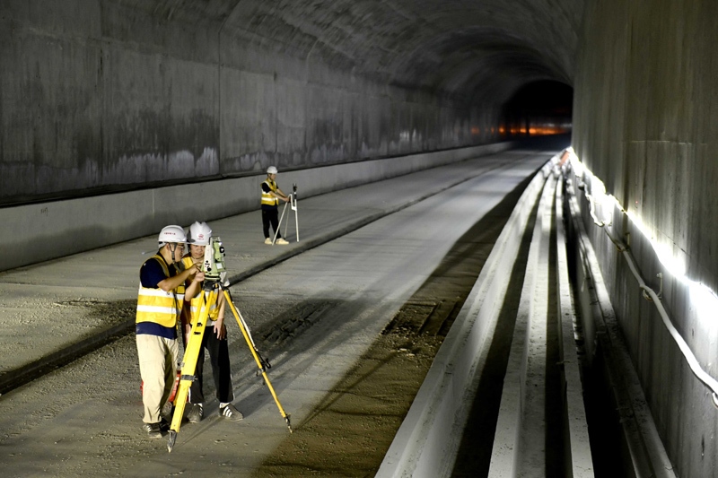 7月30日,在濟(jì)濱高鐵機(jī)場(chǎng)隧道內(nèi),中鐵十局的工作人員進(jìn)行全斷面掃描,以獲取隧道內(nèi)幾何形態(tài)。