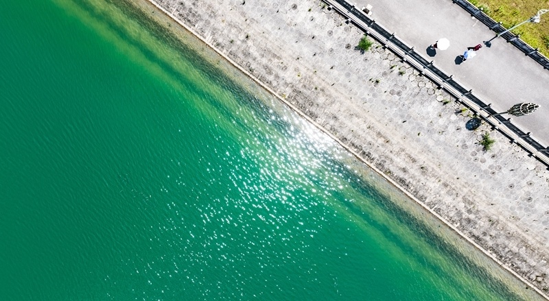 7月30日,游客在瑤池公園內(nèi)漫步游玩(無人機照片)。