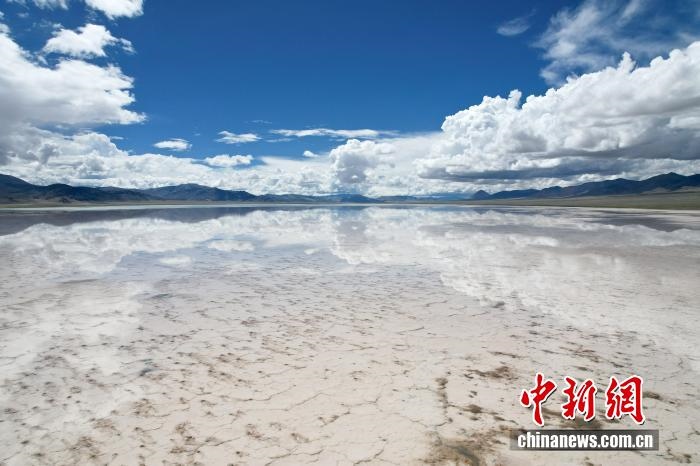 航拍西藏阿里地區(qū)革吉縣鹽湖鄉(xiāng)境內的鹽湖。中新社記者 張祥毅 攝