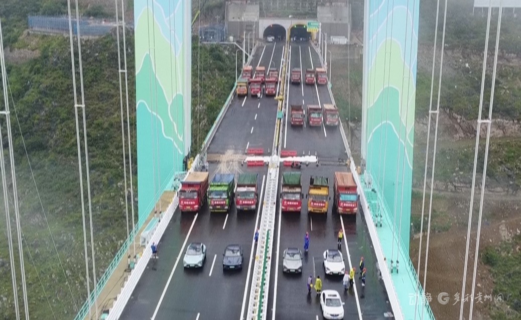 花江峽谷大橋啟動荷載試驗8月21日,隨著6輛35噸的三軸載重車率先駛上橋面,花江峽谷大橋荷載試驗正式啟動,迎來通車前的“關鍵大考”。
