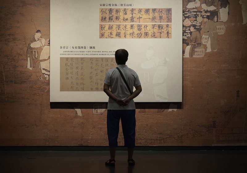 8月5日,游客在哈爾濱金上京歷史博物館游覽。