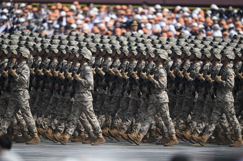 9月3日,紀(jì)念中國人民抗日戰(zhàn)爭暨世界反法西斯戰(zhàn)爭勝利80周年大會在北京隆重舉行。這是徒步方隊通過天安門廣場。
