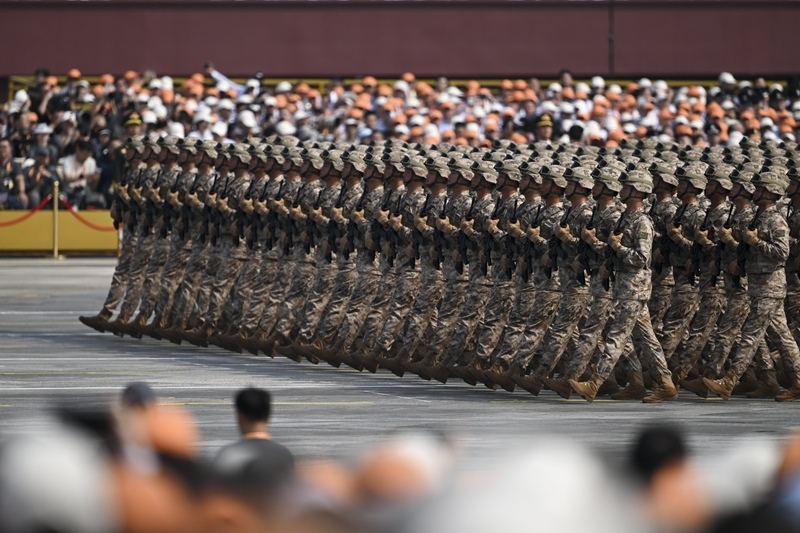9月3日,紀(jì)念中國人民抗日戰(zhàn)爭暨世界反法西斯戰(zhàn)爭勝利80周年大會在北京隆重舉行。這是信息支援部隊方隊接受檢閱。