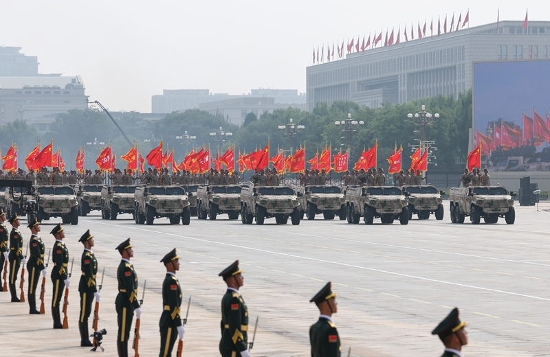 9月3日,紀(jì)念中國(guó)人民抗日戰(zhàn)爭(zhēng)暨世界反法西斯戰(zhàn)爭(zhēng)勝利80周年大會(huì)在北京隆重舉行。這是地面突擊方隊(duì)通過(guò)天安門廣場(chǎng)。