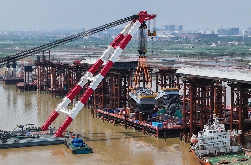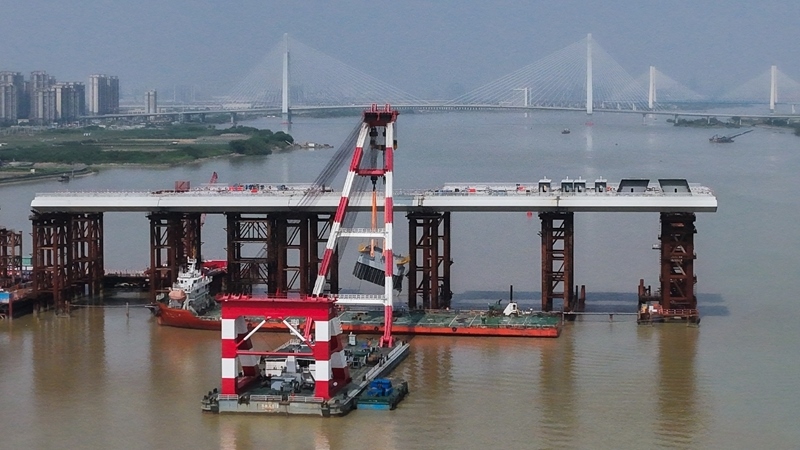 10月10日,由中鐵建大橋局承建的萬龍大橋吊裝架設(shè)首節(jié)段主塔。位于廣州南沙區(qū)的萬龍大橋跨越珠江口龍穴南水道,全長5146米,主橋長1150米,主跨608米,為粵港澳大灣區(qū)又一世界級橋梁。