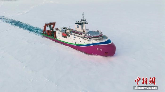 圖為2025年9月,“探索三號(hào)”在北極密集冰區(qū)破冰航行。(中國(guó)科學(xué)院深海科學(xué)與工程研究所 供圖)