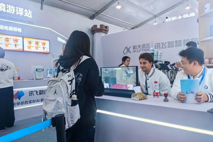 觀眾在第八屆世界聲博會(huì)上體驗(yàn)一款多語(yǔ)種AI透明屏(11月3日攝)。新華社記者 汪海月 攝