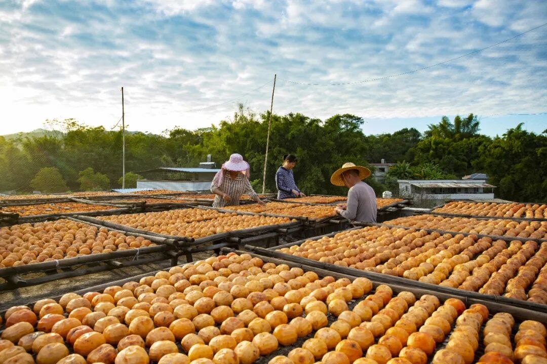 在廣東省梅州市平遠縣石正鎮(zhèn)中東村,村民正趁晴好天氣曬制柿餅。平遠縣供銷總公司通過合作社與農(nóng)戶簽訂收購合約,使石正柿花成為當?shù)剞r(nóng)民增收致富的特色產(chǎn)業(yè)。馮錫權攝(影像中國)