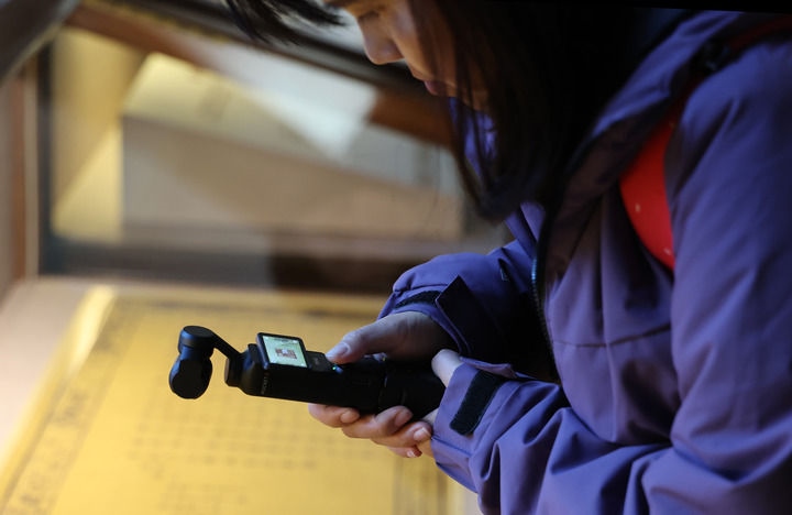 11月28日,在遼寧大連旅順博物館,媒體工作者拍攝展出的“明諭琉球國王敕”(仿制品)。新華社記者 李鋼 攝