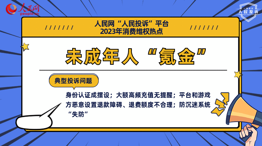 典型投訴問題:身份認(rèn)證成擺設(shè);大額高頻充值無提醒;平臺和游戲方惡意設(shè)置退款障礙、退費額度不合理;防沉迷系統(tǒng)“失防”