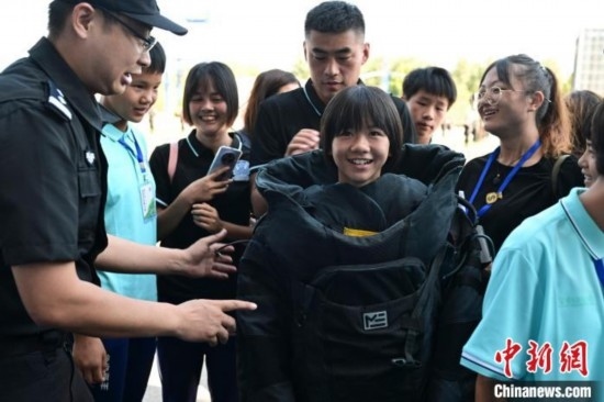 7月9日,隊(duì)員們觀看特警訓(xùn)練及警犬演示,現(xiàn)場體驗(yàn)警械武器和警車等裝備使用,民警講解安全防范知識。