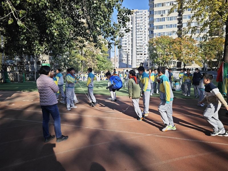 為了引導(dǎo)孩子們課間走出教室,北醫(yī)附小根據(jù)季節(jié)設(shè)計大型集體項目,比如秋季開展的跳長繩,老師們也參與進(jìn)來搖繩,帶動更多孩子參加體育鍛煉。“讓學(xué)生在課間得到充分休息、活動,才能保證學(xué)生的課堂狀態(tài),從而促進(jìn)課堂教育教學(xué)質(zhì)量提升。”田國英表示。