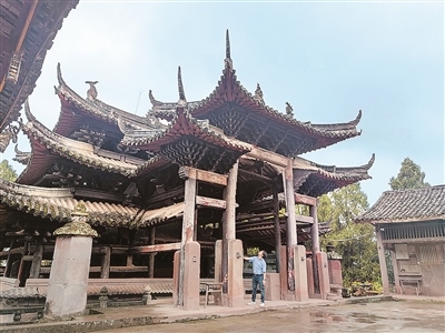 “古貓陪你去看博物館”創(chuàng)始人湯詩偉在四川省安岳縣考察全國重點(diǎn)文物保護(hù)單位木門寺。