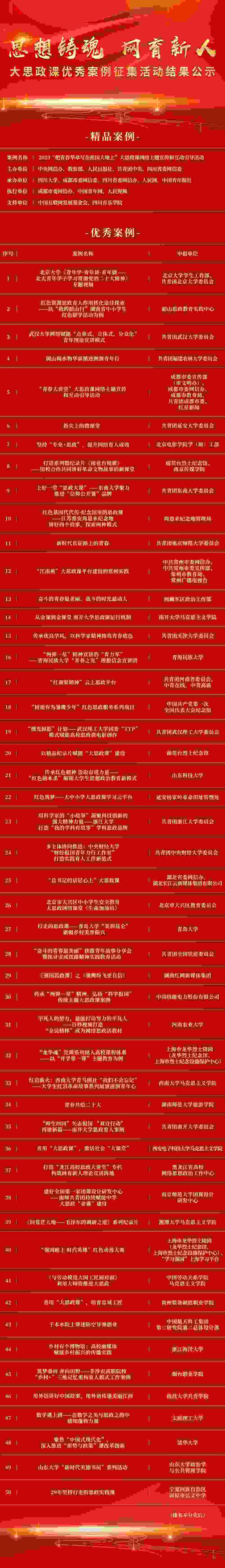 由中央網(wǎng)信辦網(wǎng)絡(luò)傳播局、共青團(tuán)中央宣傳部指導(dǎo),人民網(wǎng)、中國(guó)青年報(bào)社共同主辦的“思想鑄魂 網(wǎng)育新人”大思政課優(yōu)秀案例征集活動(dòng)評(píng)選結(jié)果已經(jīng)產(chǎn)生,現(xiàn)對(duì)擬入選案例進(jìn)行公示,公示時(shí)間為1月20日至1月24日,公示期間歡迎社會(huì)各界監(jiān)督評(píng)議,有關(guān)意見(jiàn)可發(fā)送至郵箱eduyouth@163.com,我們將及時(shí)受理、認(rèn)真核查,公示期滿后將適時(shí)對(duì)外發(fā)布最終結(jié)果。