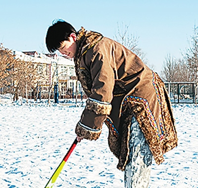 寒假期間,每當夕陽的余暉染紅了大地,達斡爾族人迎新春最傳統(tǒng)的運動項目——打火球就要拉開序幕。打火球的比賽規(guī)則簡單而有趣,通常選擇平坦的草地或村中開闊的街道作為場地,兩端各設(shè)一個球門,兩隊人數(shù)相等即可,以進球多者為勝。盡管開始時我屢屢失誤,但在長輩們的鼓勵和指導(dǎo)下,我逐漸掌握了技巧,每一次成功擊打都讓我興奮不已。