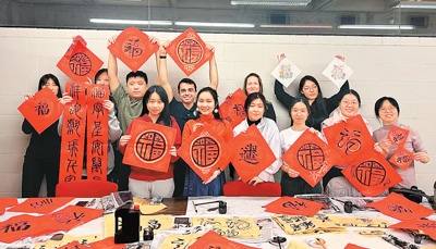 書畫社推動(dòng)了中國文化在校園里的傳播。秦思涵說:“今年除夕夜,我們?cè)趯W(xué)校擺攤賣春聯(lián)時(shí)發(fā)生了一件事情。一名女生問我,能否為她和她的室友們寫一副春聯(lián),里面包含她們的中文名字。有一名女孩不知道自己中文名字叫什么。她是一名扇舞舞者,我想了很久,為她起了名字‘葉舞翎’,并將其融入了春聯(lián)祝福。春聯(lián)寫好后,我們每個(gè)人都很開心。這樣的小事還有很多,越來越多人對(duì)我們的文化感興趣。”