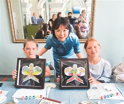 不久后的9月,“東方雅韻——中國文化藝術展”2.0版本及“天涯共此時”中秋文化體驗活動在西班牙馬德里中國文化中心舉辦。天津博物館首次將體驗工坊帶進馬德里社區(qū),當?shù)貎和跉g聲笑語中沉浸式感受中華傳統(tǒng)技藝,一位當?shù)嘏W⒌赜猛赜」ぞ邚涂虠盍嗄景婺戤?,她指尖起落間,寓意吉祥的“連年有余”圖案逐漸清晰。工坊結束后,大家拿著自己拓印的團扇、親手捏制的中秋兔子與老師合影,還放飛了自己動手著色的迷你風箏。
