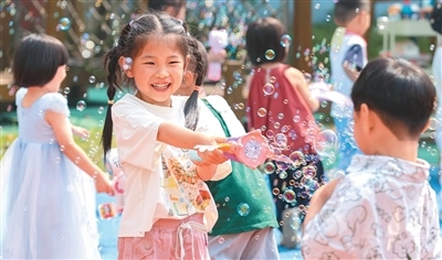 在政策引導支持下,各地各部門舉辦豐富多彩的慶?;顒?,小朋友們笑逐顏開、活力滿滿,展現著朝氣蓬勃的精神風貌,凝聚著努力奮進的成長力量。